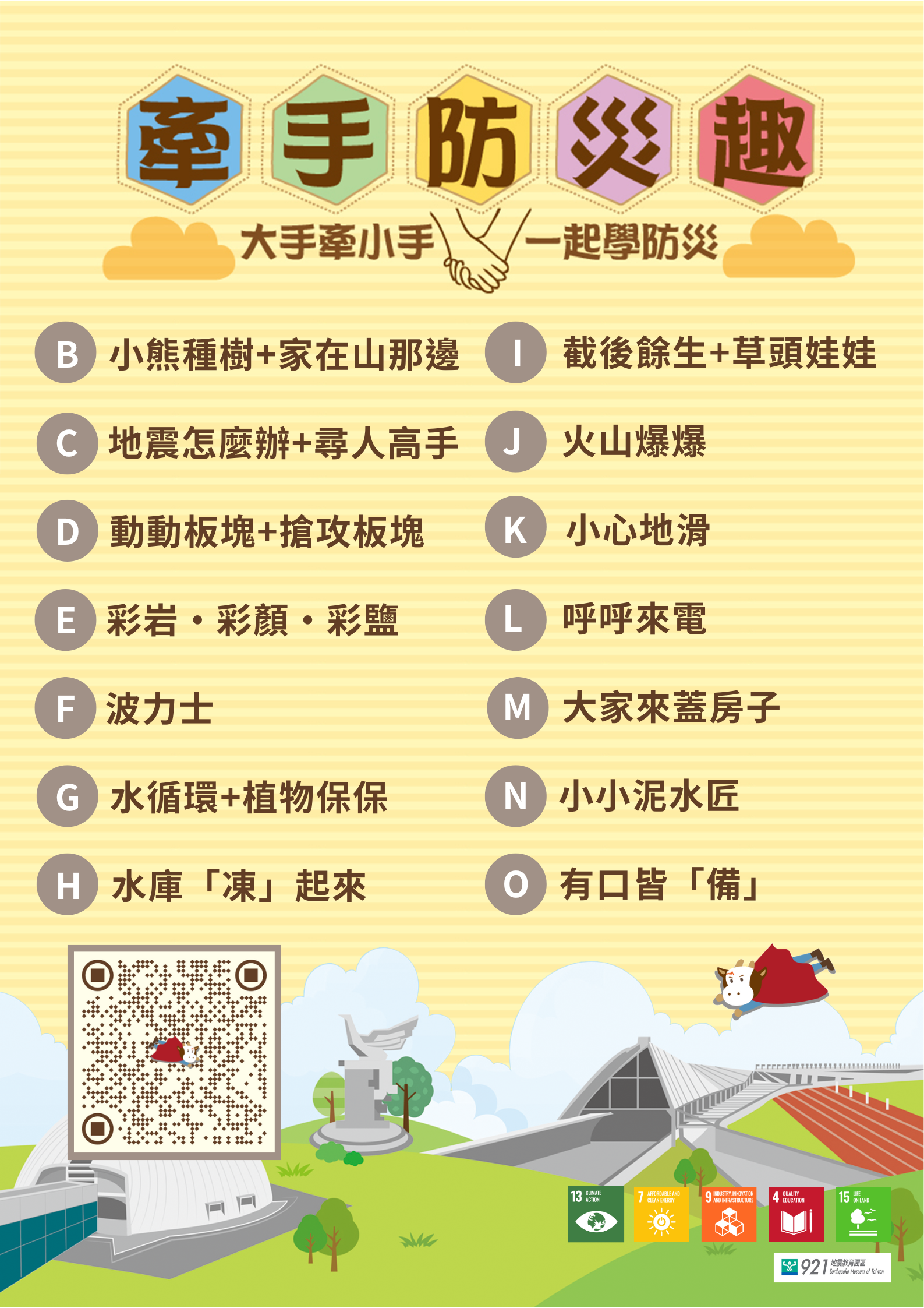 二、 園區致力於推廣地震科學、建築安全及防災教育,特別規劃旨揭活動,透過套裝課程,帶領大家從多元主題來認識地震與防災。